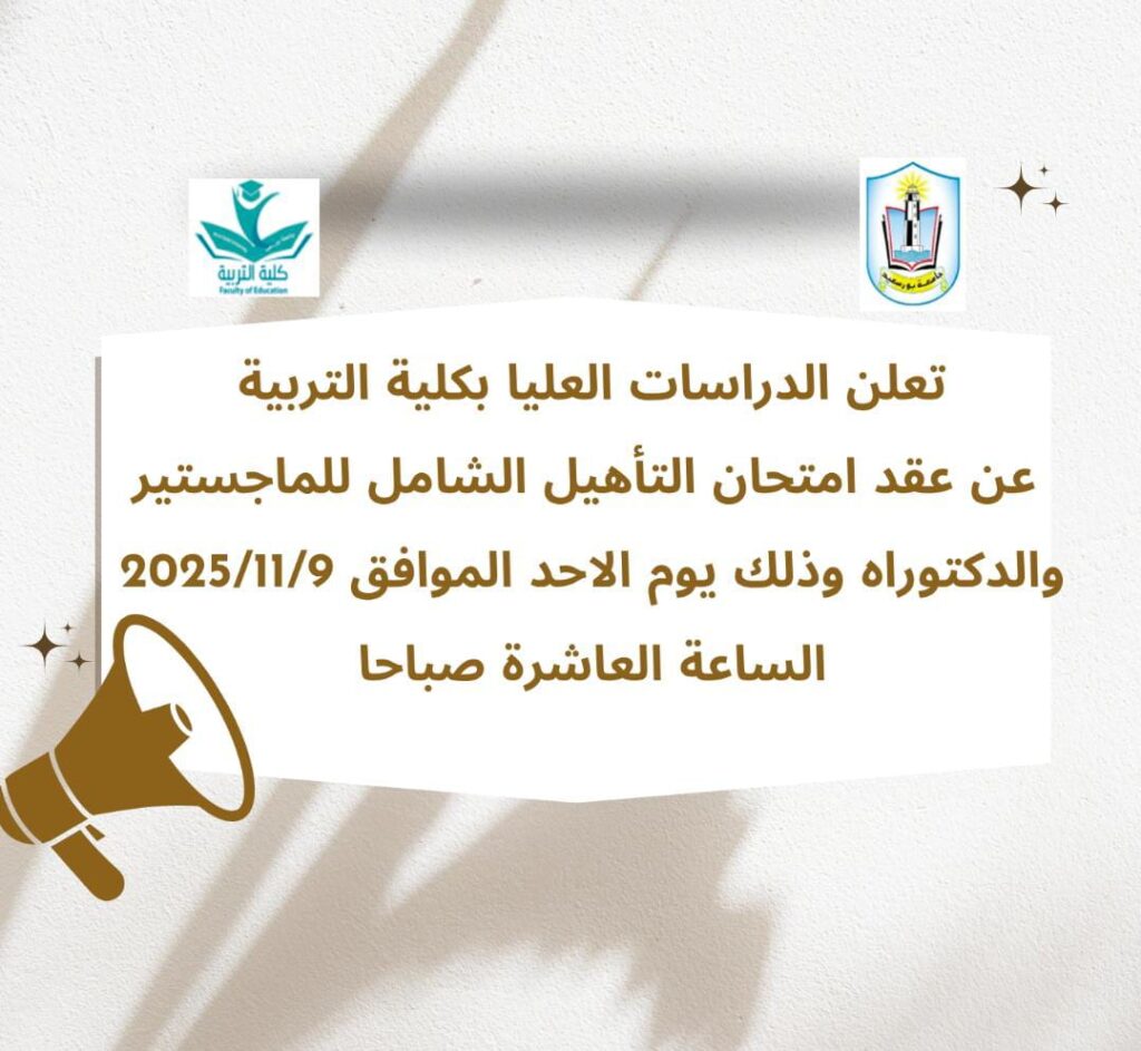 اعلان عن امتحان تاهيلى ماجستير ودكتوراه للعام الجامعى 2025-2026