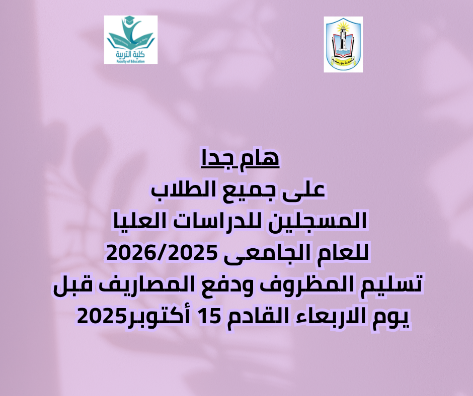 جدول الدبلوم المهنى والخاص والماجستير والدكتوراه للفصل الدراسي الاول2025-2026 قراءة المزيد »