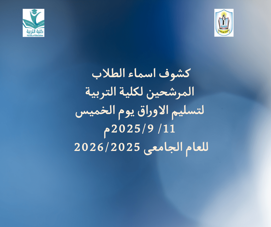 كشوف اسماء الطلاب المرشحين لكلية التربية لتسليم الاوراق يوم الخميس9/11 قراءة المزيد »