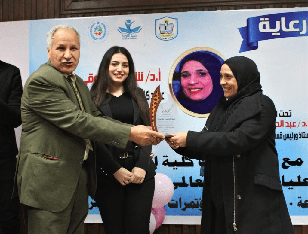 وتضمنت الاحتفالية تكريمات وتوزيع دروع من قبل أ.د/ شيرين دسوقي لكلاً من ا.د/ عبدالصبور منصور، د/وليد فتحي، والسادة الأفاضل المديرين والموجهين لمابذلوه من جهد خلال إشرافهم على برنامج التدريب الميداني بالعام الدراسي 2021- 2022 م ، بالإضافة إلى التلاميذ الموهوبين ذوى الهمم.