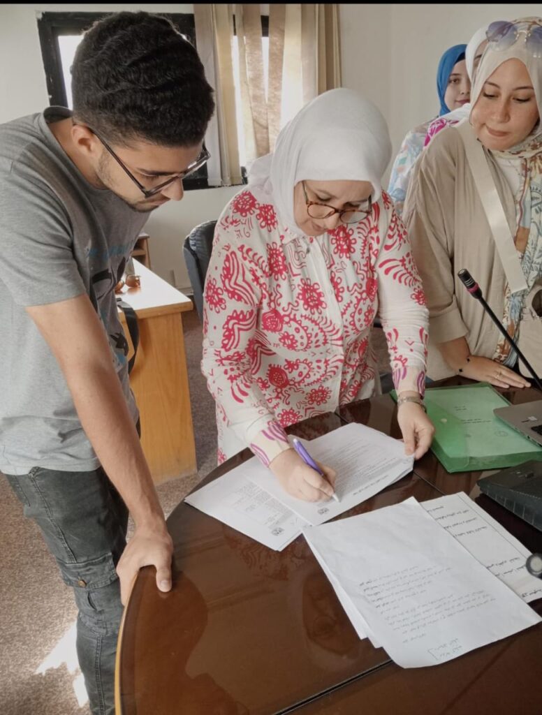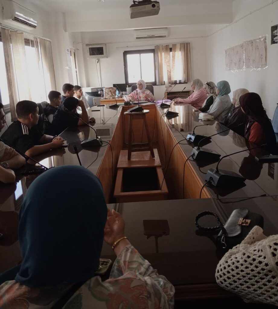 وقد استقبل الطلاب كلا من ا.م.د / ايناس النقيب مدير الوحدة و د/ ايمان عثمان نائب مدير الوحدة