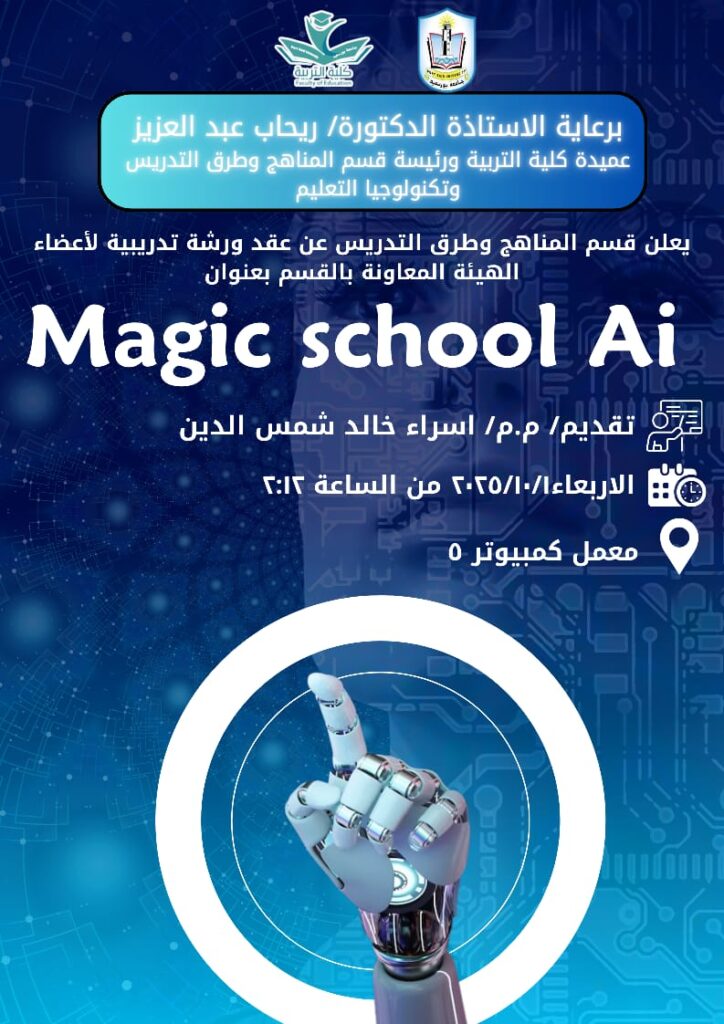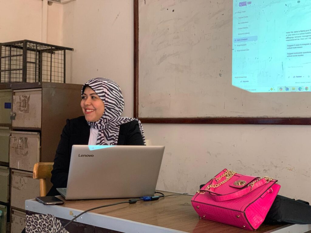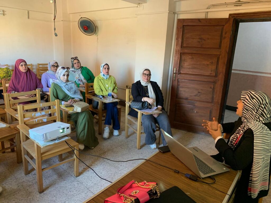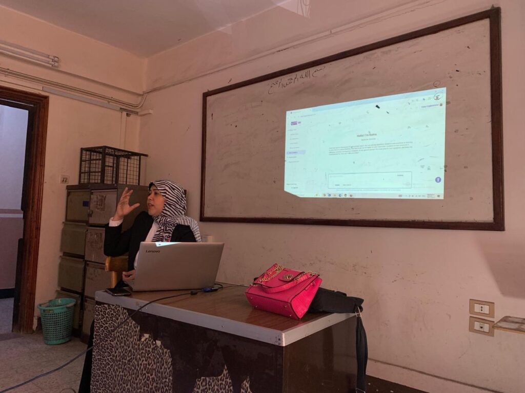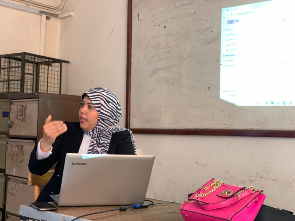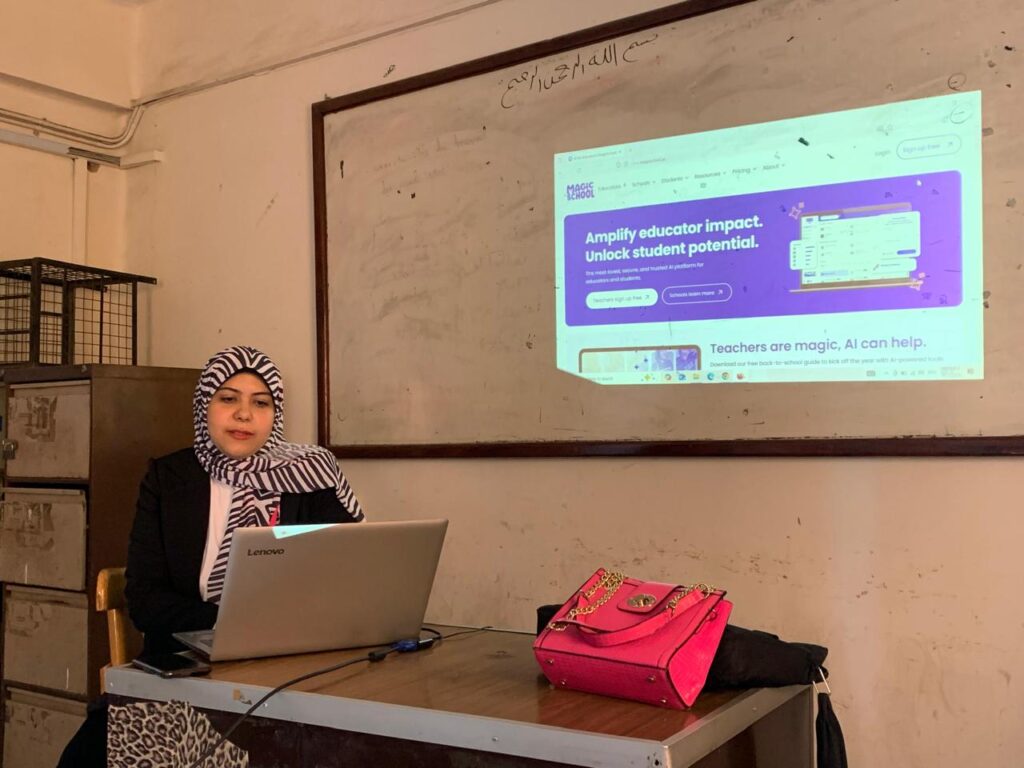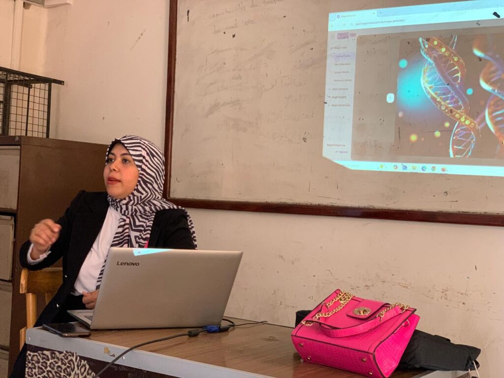 يوم الأربعاء الموافق 1/10/2025 م بمعمل كمبيوتر (5) بكلية التربية وحاضر فيها م.م/ إسراء خالد شمس الدين المدرس المساعد بقسم المناهج وطرق التدريس، حيث قامت بتدريب أعضاء الهيئة المعاونة بالقسم على كيفية استخدام وتدريس أدوات الذكاء الاصطناعي الخاصة بالمنصة لطلاب المستوى الرابع جميع الشعب